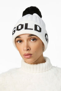 • GOLD wording jacquard knit at fold over band