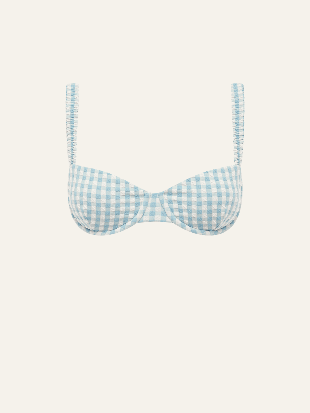 Our most-loved one piece design returns in the softest shade of blue. Made for sun—filled days by the water, this supportive silhouette is complete with adjustable straps, multi—option back closure and vintage inspired belt to cinch your waist.