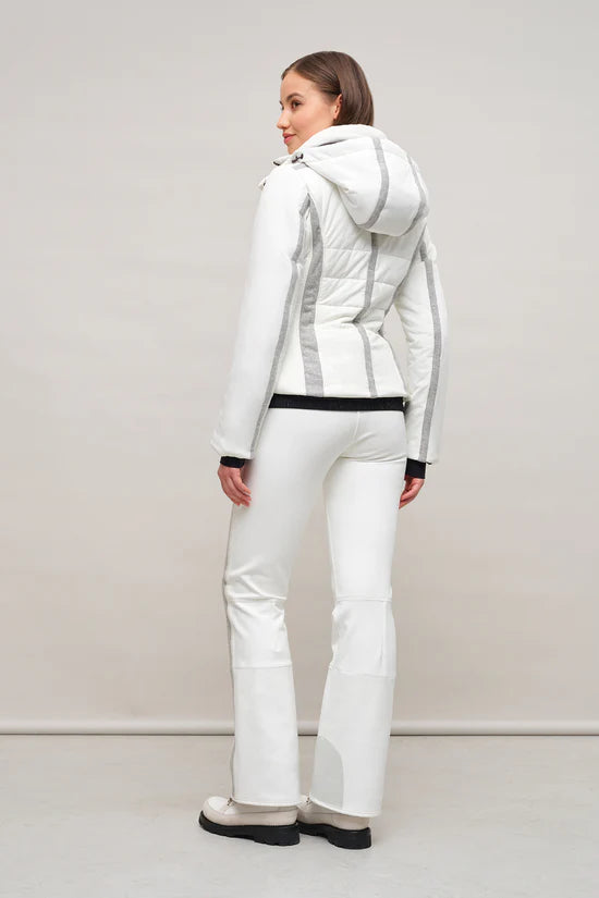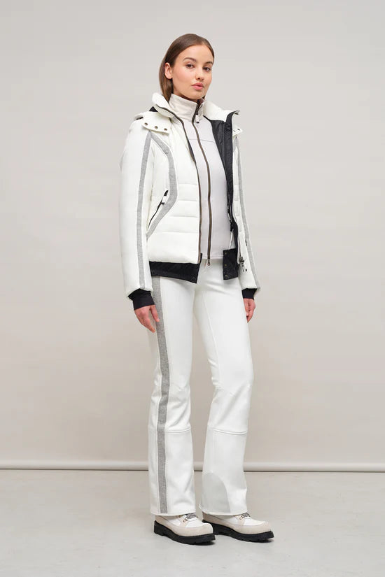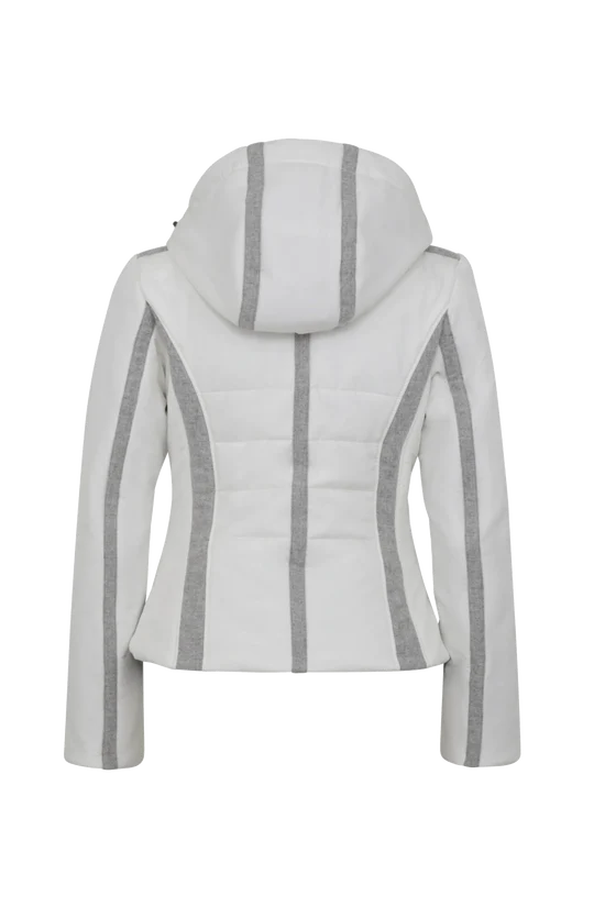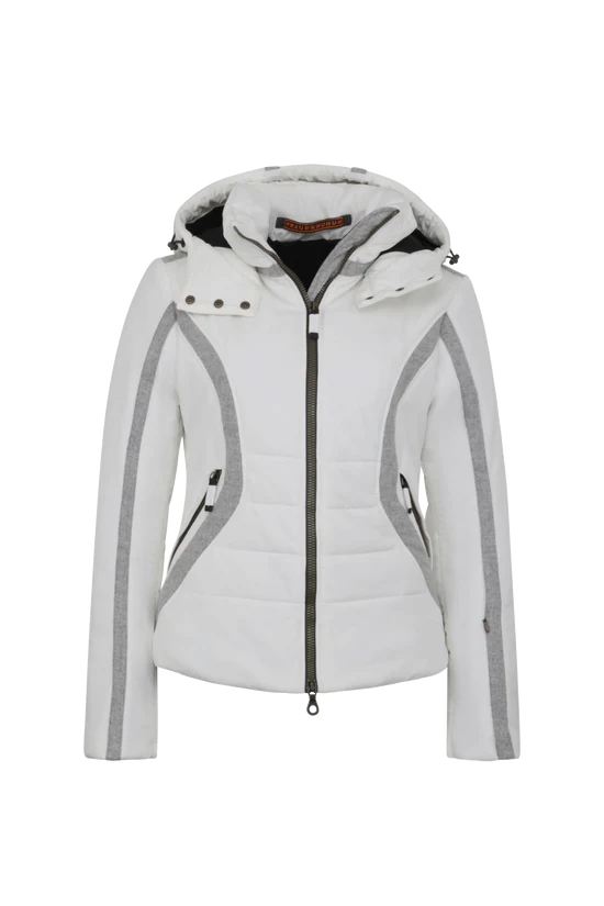 This is Frauenschuh’s first ski jacket made from the innovative new material Light Italian Nylon. Its appearance resembles silk, and the texture feels just as luxurious. In terms of performance, it meets every expectation. The feminine fit is accentuated by loden detailing.