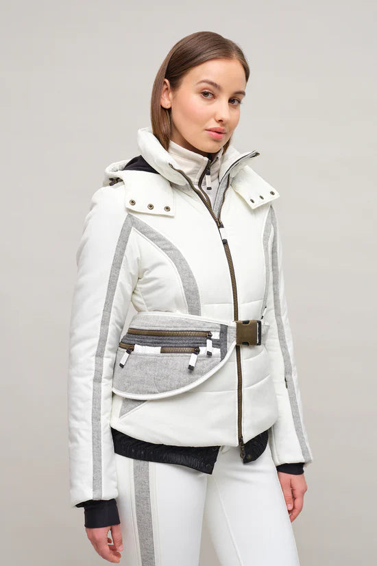 • Classic women’s ski jacket features including two internal zipped pockets, sleeve snow cuffs, and a ski pass pocket with a seamless zip